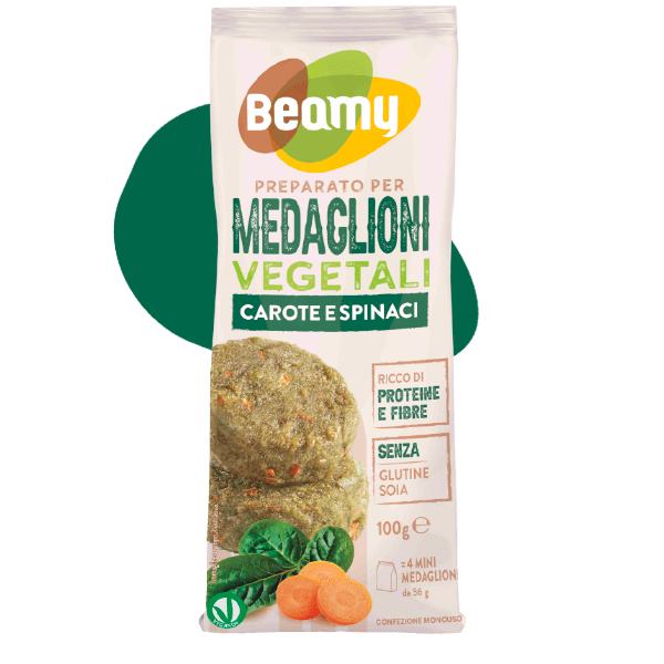 - 1 busta di preparato per medaglioni carote e spinaci Beamy (100g)
