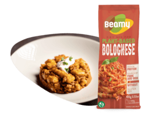 with Beamy plant-based mix for Bolognese sauce