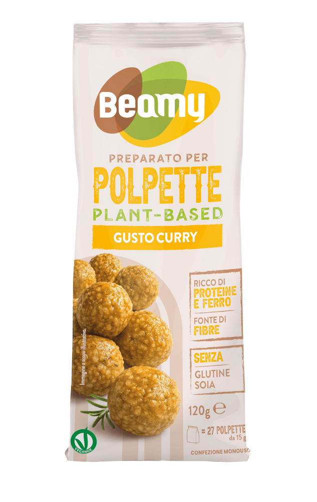 Proteine di pisello, farina di lenticchia rossa, stabilizzante: metilcellulosa; farina di mais, sale iodato, spezie e piante aromatiche in proporzione variabile: curry madras 16% (curcuma, paprika, zenzero, coriandolo, cannella, noce moscata, pepe nero, anice stellato, chiodi di graofano) prezzemolo, pepe bianco, alloro, timo, zenzero, aromi naturali, cipolla, aglio.